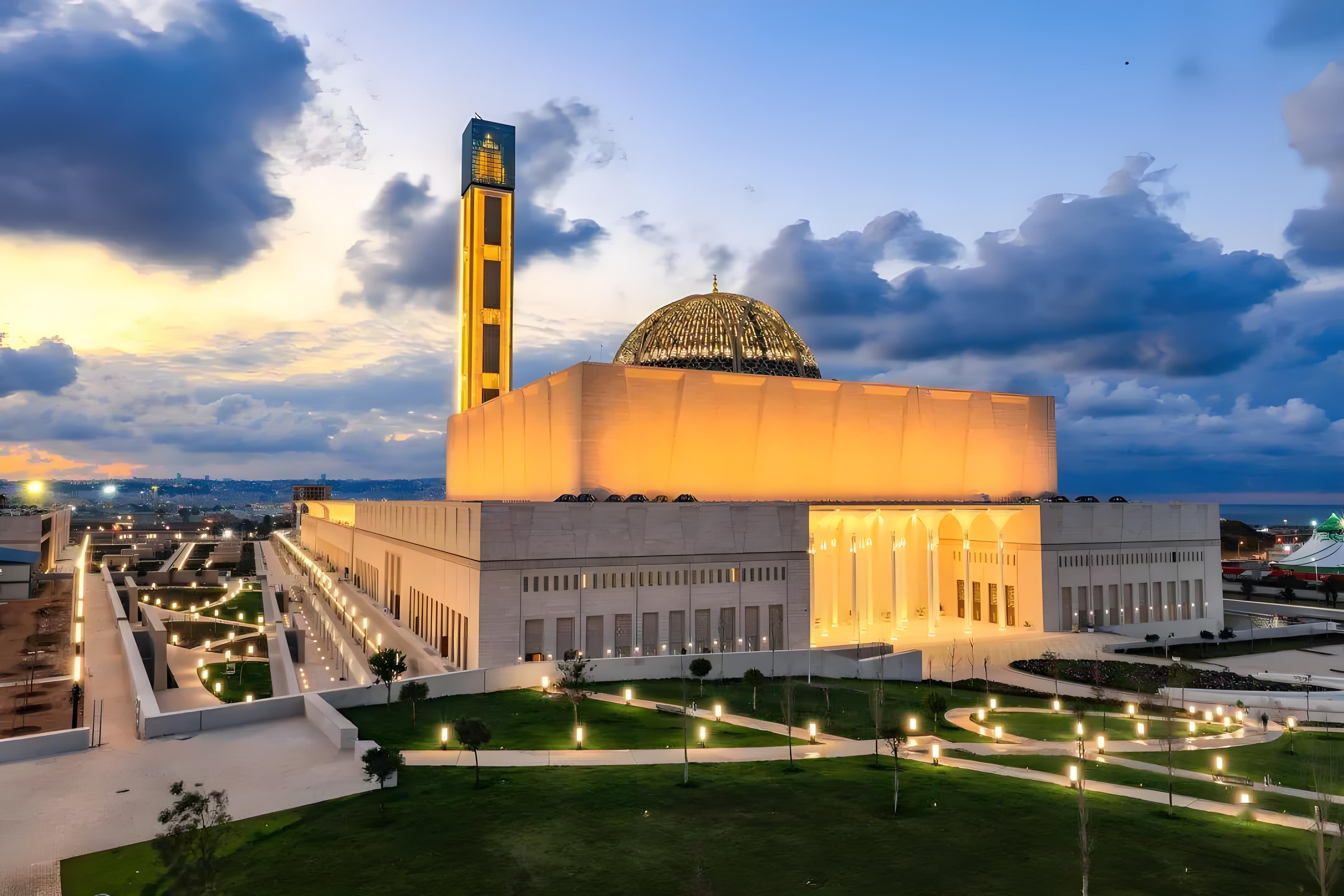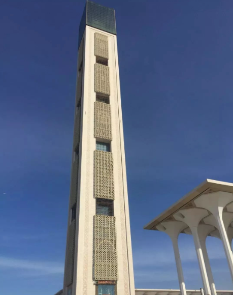 由布特弗利卡总统亲自参加。项目的合同额为15亿美元,总建筑面积达到40万平方米,包括宣礼塔、祈祷厅、伊斯兰学院、图书馆及文化中心等12座建筑。该项目预计在2015年9月完工,建成后将成为世界第三大清真寺之一